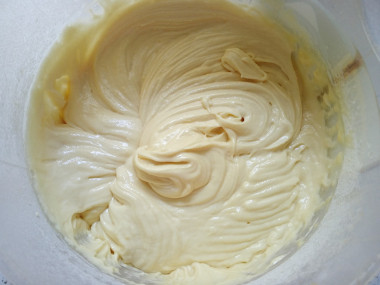 По одному добавьте яйца, каждый раз взбивая массу. В результате должна получиться пышная однородная смесь.