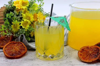 Как видно по моей фотографии, что-то пошло не так… Лимонад получился слишком сладким, да и цвет сильно отличается от цвета лимонада СИНЕГЛАЗОЙ. Стала разбираться. А оказалось дело в том, что я перепутала количество лимонов и апельсинов. Это провал. 2 больших апельсина на 1 маленький лимон… Сама идея лимонада мне очень понравилась, готовится легко, да ингредиенты самые простые. Думаю, если бы я соблюла все пропорции, как указано в ингредиентах, то лимонад получился бы шикарный: в меру сладким и утоляющим жажду. Как перепутала, до сих пор не пойму… СИНЕГЛАЗАЯ, не смотря на мой промах, тебе все равно большое спасибо за рецепт! Готовить по твоим рецептам одно удовольствие!