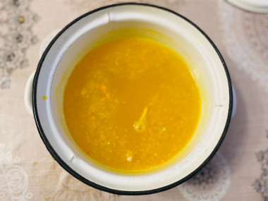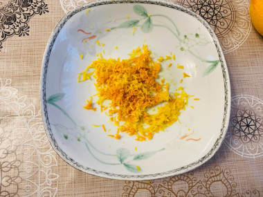 Для пробы взяла половину ингредиентов, сняла цедру при помощи терки, соковыжималки для цитрусов у меня нет и просто разрезала плоды пополам и выдавила сок столовой ложкой, все смешала и оставила в холодильнике на два часа.