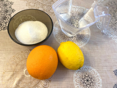 Лимоны и апельсин хорошо вымыть горячей водой, обсушить. С цитрусов снять цедру не задевая белый слой и выжать сок.