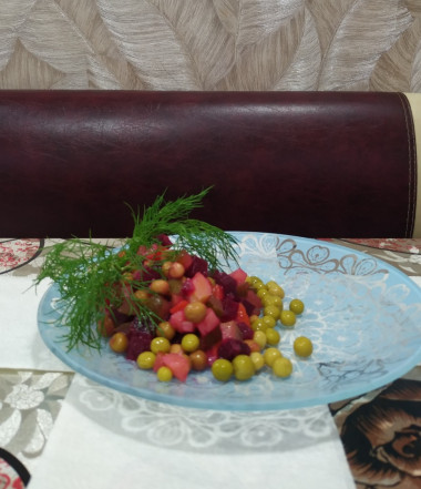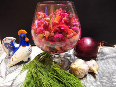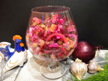 Мне лично больше нравится вариант винегрета без квашеной капусты.