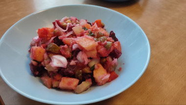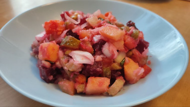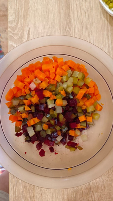 Не передать словами, с каким удовольствием мы уминали это простое, сытное блюдо, с воспоминаниями детства, когда бабушка с мамой готовили этот незатейливый салат на Новый год, и студенческие годы, когда бюджетный и сытный винегрет заменял и не всегда доступное мясо, и гарнир.