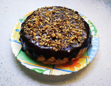 Залейте торт остывшей шоколадной глазурью. Разровняйте.