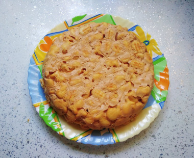 На следующий день торт освободите от пленки и быстро, но осторожно переверните его на плоское блюдо.