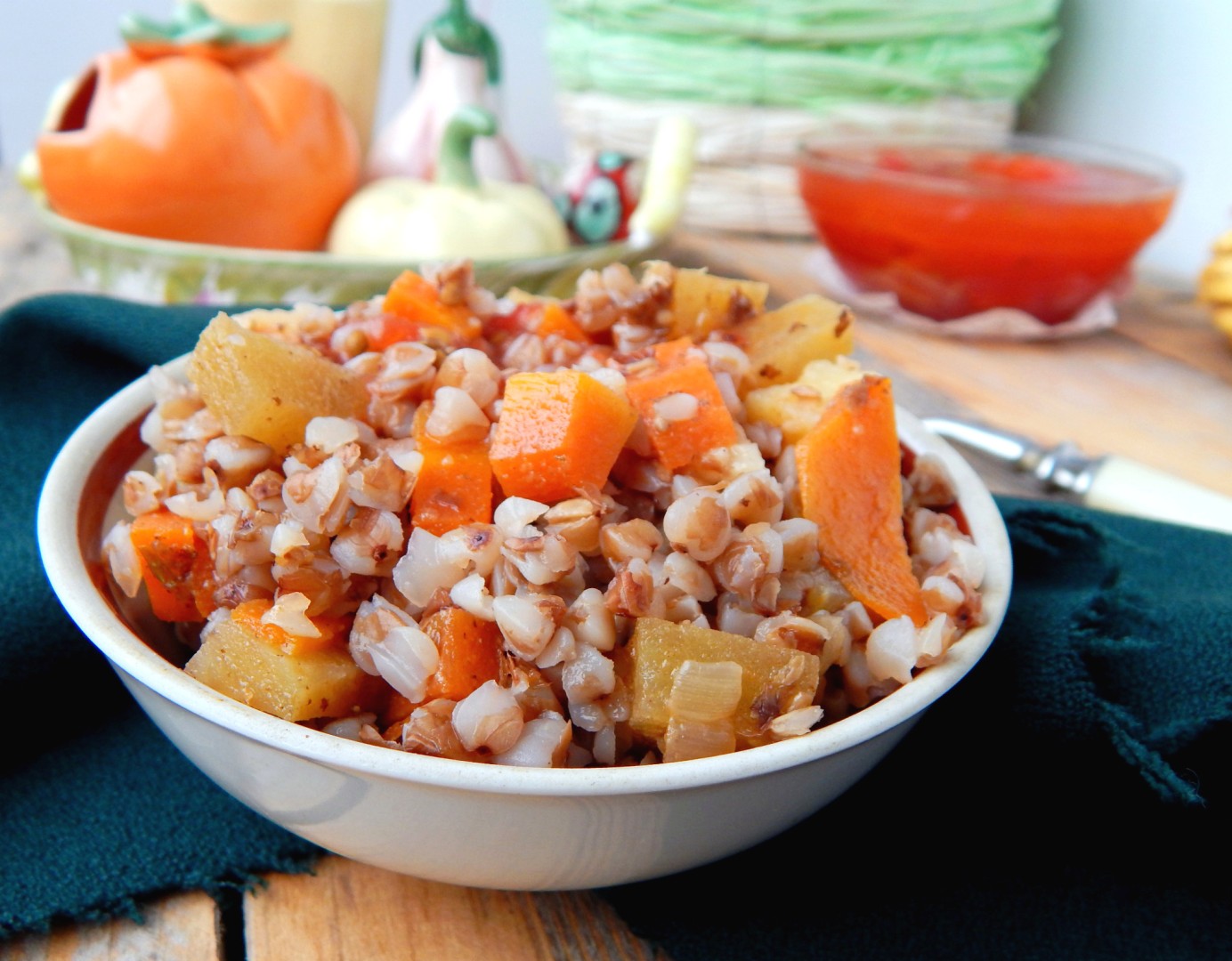Сварила гречку с кабачками, как и ожидалось — все просто и сытно. Сначала обжарила лук с морковкой на масле, потом добавила кабачки кубиками. Отдельно сварила гречку рассыпчатую и смешала с овощами. Солила и перчила по вкусу.