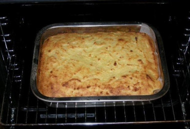 В духовке у меня запеканка готовилась 45 минут. Получилась она нежная, вкусная, без привкуса соды. Вышла запеканка у меня не очень пышная, потому что форму я использовала достаточно большую, и слой творожного теста получился не очень толстый.