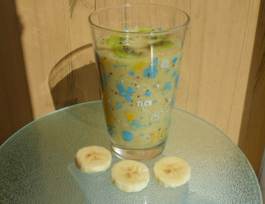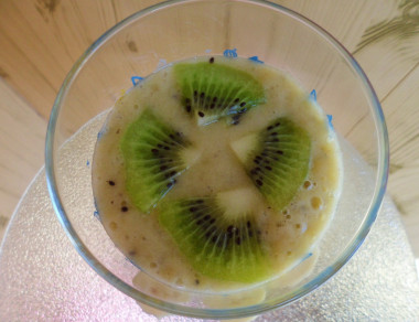 Сегодня сделала смузи с киви и бананом при помощи блендера. Получился легкий, быстрый и очень вкусный завтрак за считанные минуты. Придерживалась рецепта во всем, только не стала добавлять мёд, так как для меня сладости банана достаточно, да и киви был очень спелым, совсем не кислым. Благодарю за рецепт!