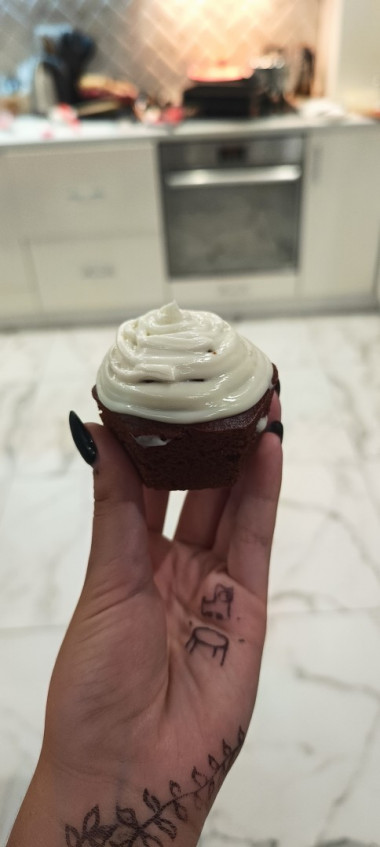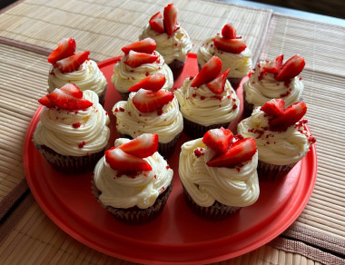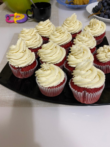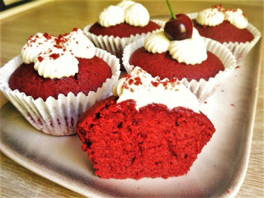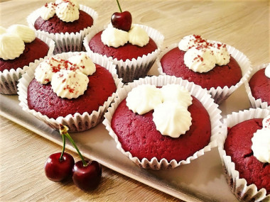Здравствуйте! Как приятно читать такие отзывы! «Красный бархат» – это всегда маленькая магия: насыщенный цвет, нежная текстура и тот самый бархатный вкус. Очень рада, что капкейки получились воздушными и вкусными! Если вдруг захочется немного поэкспериментировать, можно украсить капкейки свежими ягодами – получится просто фантастика. Выпекайте с удовольствием и заходите за новыми рецептами!