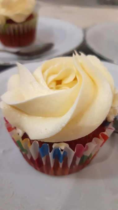 Очень вкусные капкейки получились. Особый любитель красного бархата муж, готовила в его день рождение. До этого как-то пробовала печь торт, но он был чуть суховат. А вот капкейки самое то и готовятся проще и выглядят праздничнее)))