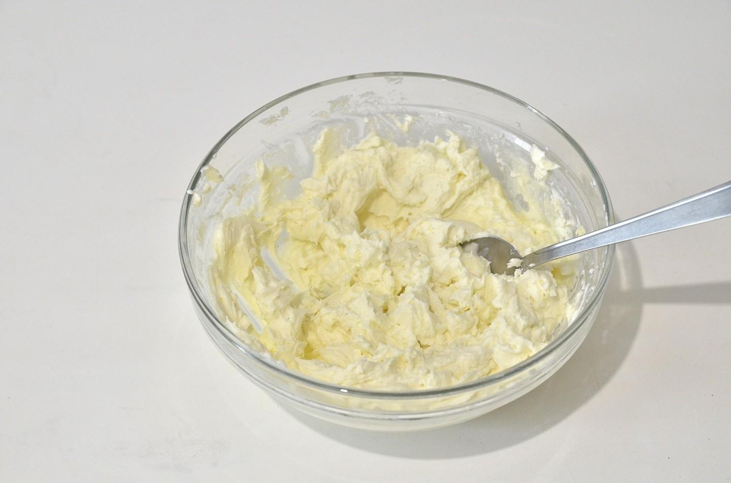 Взбейте миксером масло с сахарной пудрой и ванильным сахаром. Добавьте творожный сыр и взбивайте до однородного пышного крема.