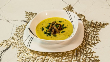 К обеду сварила овощной суп пюре со сливками для ребенка. Моя дочка любит такие супы, да и я тоже. Поэтому мы с ней на пару покушали этот замечательный супчик. Мне нравится такой способ приготовления, когда не нужно зажаривать овощи. Иногда хочется именно такого простого и лёгкого супа-пюре. Да и приготовить его можно очень быстро. Этот суп я варила на воде, из овощей у меня не было брокколи, но я заменила эту капусту на замороженный шпинат. Поэтому и цвет готового блюда получился насыщенно зелёным. После добавления сливок подержала кастрюлю на небольшом огне пару минут. Получился вкусный и полезный суп, очень нежный и лёгкий. Я не добивалась консистенции пюре, сделала его более жидким. Подавала с пшеничный отрубями.