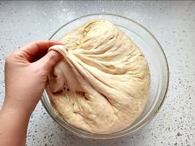 Постепенно подсыпайте муку. Тесто нужно хорошо вымесить, примерно 10 минут. Оно не должно прилипать к рукам. В итоге у вас должно получиться мягкое, эластичное тесто.