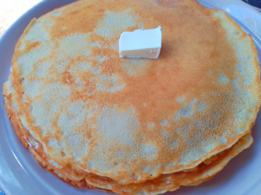 Приготовила сегодня блинчики на скисшем молоке. Рецепт, в принципе, простой. Приготовила тесто, муки ушло чуть больше. Дала ему отдохнуть минут 20 и пекла вкусные, красивые блины. Каждый блинчик смазывала сливочным маслом.