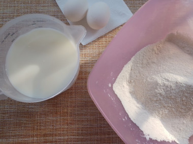 Как сделать блины на скисшем молоке? В миску вбейте куриные яйца, добавьте сахар и соль. С помощью миксера, блендера или ручным венчиком смешайте ингредиенты, чтобы куриные яйца полностью разошлись в смеси. Обязательно мойте яйца перед использованием, так как даже на кажущейся чистой скорлупе могут находиться вредные бактерии. Лучше всего использовать моющие средства для пищевых продуктов и щетку.