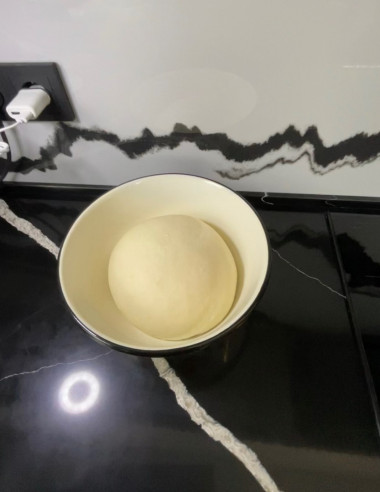 Замешиваем крутое тесто для пирожков на основе муки и воды. Для этого в широкую миску просеиваем пшеничную муку, делаем небольшое углубление, вливаем в него холодную воду и растительное масло. Берем любое рафинированное без запаха. Добавляем соль. Замешиваем эластичное, упругое тесто, достаточно плотное по консистенции, скатываем его в шар и, обвернув в пищевую пленку, оставляем на 20 минут для созревания.