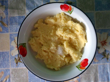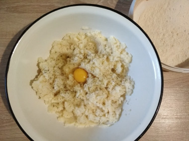 Готовить такие лепешки быстро и просто. И для начала отвариваем очищенный картофель в соленой воде. Сливаем отвар, а картофель превращаем в пюре и охлаждаем. Прибавляем яйцо и любимые специи. Здесь можно значительно разнообразить блюдо и помимо традиционных соли и перца черного молотого добавить те приправы, которые любимы семье. Если в холодильнике случайно осталось картофельное пюре, можно использовать его, а не готовить специально.