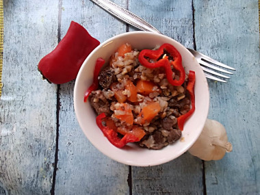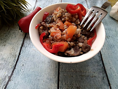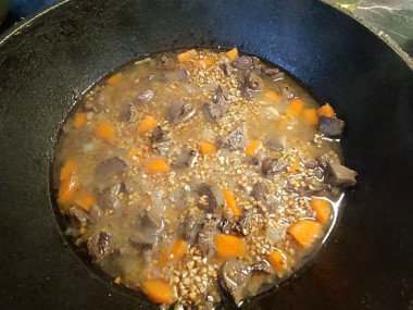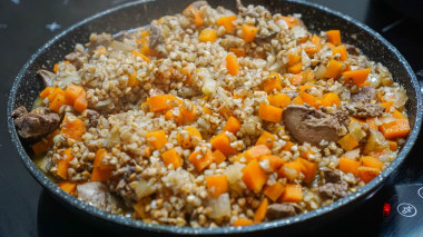 Гречка с куриной печенью сытное и полезное блюдо. Готовится втечении 40 минут. Сначала на сильном огне я поджарила печень примерно 10 минут, затем добавила лук и морковку. Когда морковь стала мягкой добавила промытую гречку и воду. Закрыла сковороду крышкой и тушила минут 20 на отметке 4 . Гречка получилась рассыпчатой и ароматной а печень мягкой и сочной. Сверху блюдо украсила сладким красным перцем рамиро. Советую всем готовить по этому рецепту.