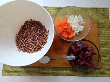 Как сделать гречку с куриной печенью? Гречку пересыпьте в глубокую миску, налейте проточную воду и смойте сор, который всплывет на поверхность. Аналогично промойте несколько раз и воду слейте. Если будут попадаться черные мелкие твердые соринки, то тоже их убирайте. Гречку нужно брать хорошего качества, и это не должна быть гречневая сечка.