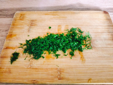 Помойте зелень. Это может быть просто укроп или петрушка, кинза или же микс. Обсушите бумажной салфеткой, а после мелко нарубите, добавьте к фаршу и все тщательно перемешайте.