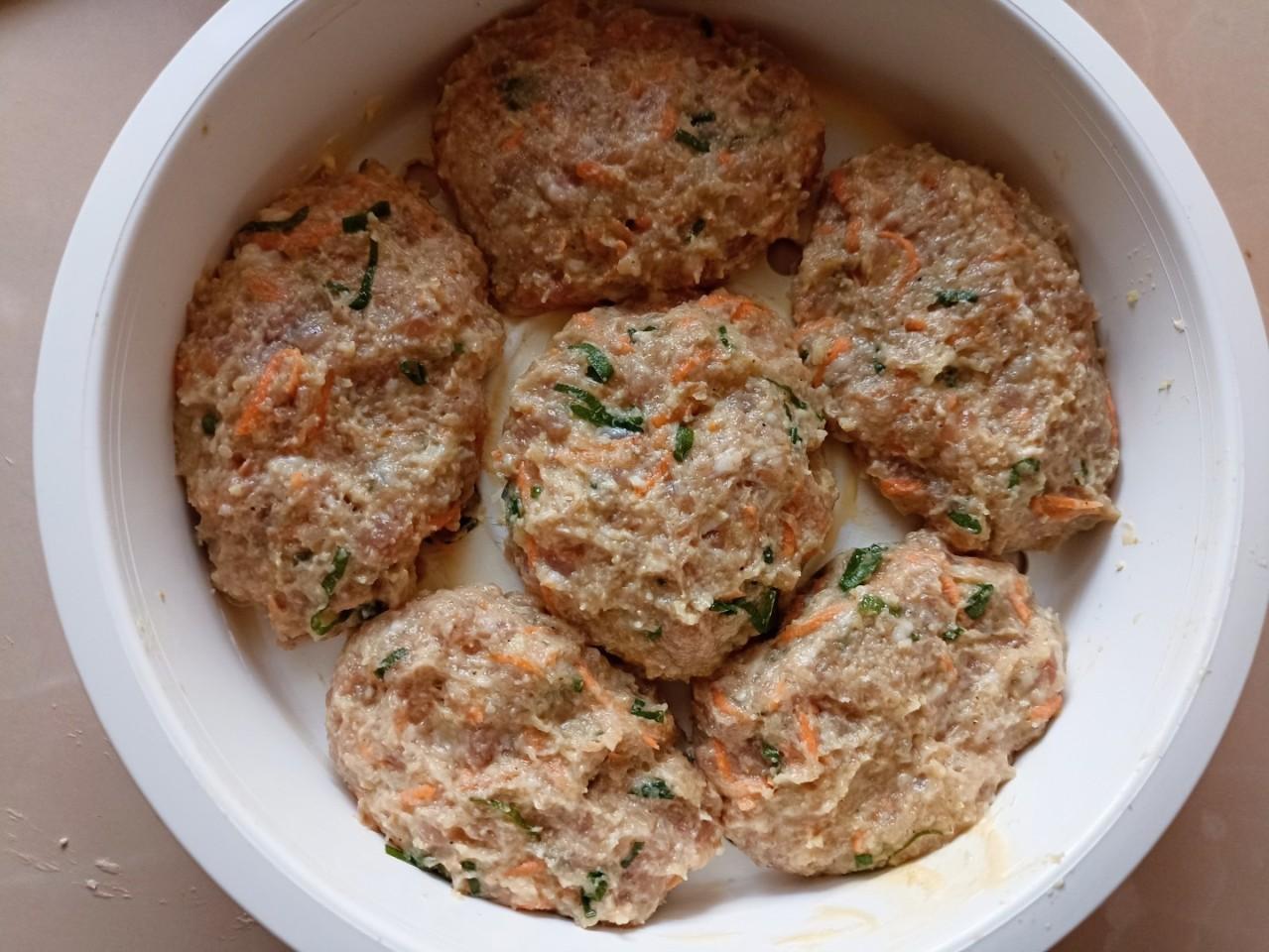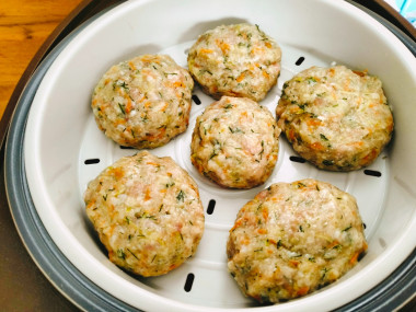 Сформируйте котлеты и уложите их плотно на сетку. Включите режим приготовления на пару и готовьте котлеты в течение примерно 20 минут. Проверить готовность можно, проткнув их острым ножом, если середина уже готова, сок будет прозрачным. Точное время приготовления и режим будут зависеть от особенностей работы вашей мультиварки. Подробнее об этом читайте в конце рецепта. Также можно готовить котлеты в пароварке или соорудить пароварку из кастрюли и дуршлага.