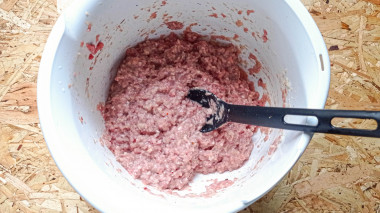 Лук очистите, помойте и нарежьте кусками, которые пройдут через горлышко мясорубки. Прокрутите лук на мясорубке во время второй волны измельчения мяса. На этом же этапе добавьте замоченный в молоке хлеб. Его можно измельчить тут же на мясорубке или хорошо размять руками. Добавьте к полученному фаршу яйцо и оставшееся от хлеба молоко. Размешайте вилкой до полной однородности.