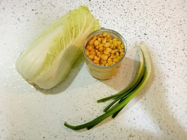К ужину сделала салат с китайской капустой и кукурузой. Он получился вкусным, свежим, хрустящим!