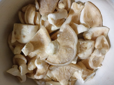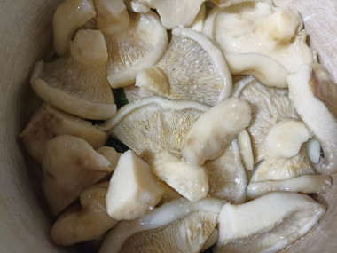 Грибы положите в кастрюлю или таз и залейте холодной чистой водой. Чтобы грибы не всплывали, сверху их можно придавить не очень тяжелым гнетом, например, тарелкой. Воду в кастрюле нужно несколько раз в день менять. Грибы оставьте в прохладном месте в воде на сутки, чтобы горечь из груздей ушла, а грибы стали хрустящими и упругими после засолки.