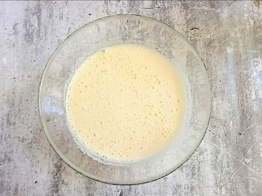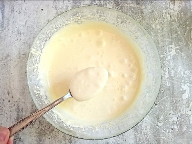 Яйца я взбила с сахаром и еще щепотку соли добавила. А соду заменила на чайную ложку разрыхлителя.