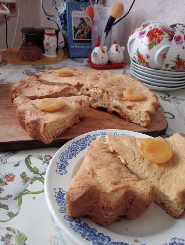 Никогда не пекла шарлотку с абрикосами, а зря. Очень понравилась. Пирог сочный, ароматный, с приятной кислинкой. На вид солнечный, с сахарной корочкой. Кроме абрикосов добавила персик. Нарезала дольками и выложила по кругу формы. Подавала пирог еще теплым с мороженым. Восторг!