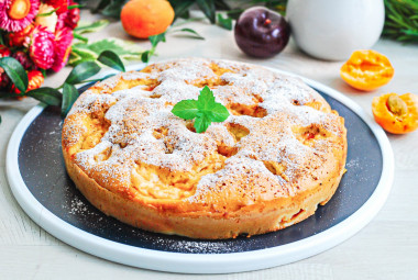 Пеку в сезон пирог с абрикосами и сливами. Пирог вкусный и простой.