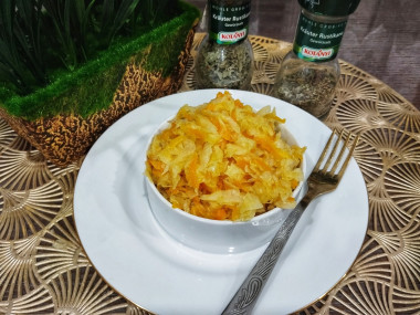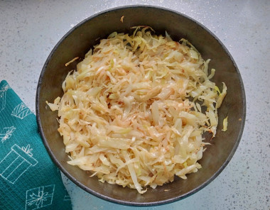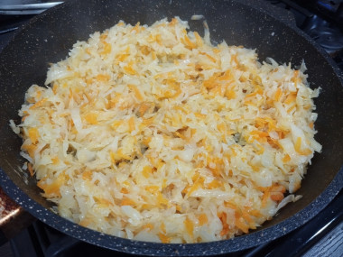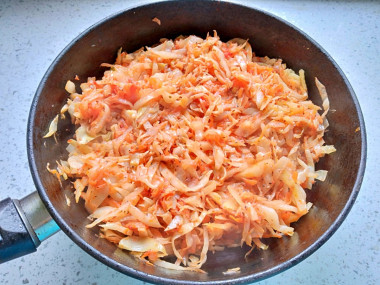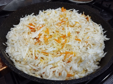 На сковороде обжарила сначала лук с морковью,затем добавила капусту,посолила,поперчила и обжарила всё вместе до готовности.