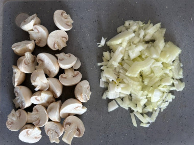 Свежие шампиньоны помойте в проточной воде и обсушите. Затем нарежьте грибы.