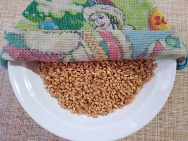 Залейте промытую пшеницу чистой кипяченой или очищенной водой и оставьте так на 8-10 часов.