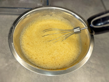 Добавьте к белкам молоко, еще раз слегка взбейте.