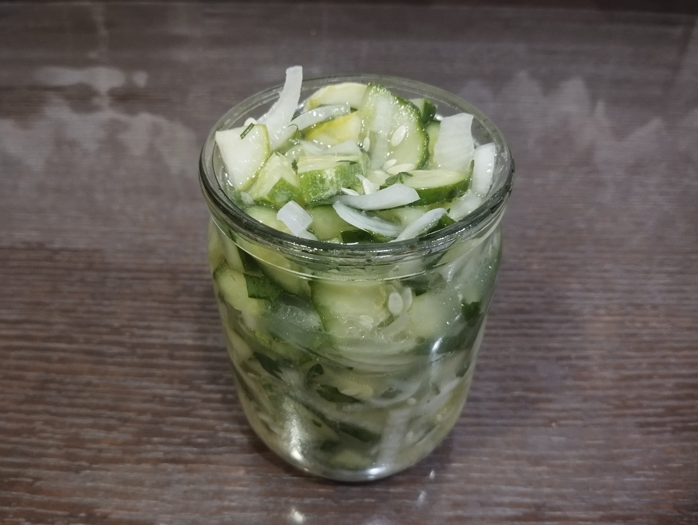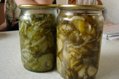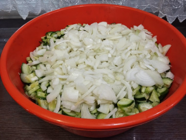 Может пригодится еще такой рецепт салата из огурцов с луком на зиму с добавлением зернистой горчицы.