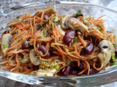 Салат фасоль огурцы морковь получился очень вкусный! Но я пошла дальше и еще грибы добавила. Получилась вообще бомба! БомбаБольшое спасибо! Супер Слюнки текут Восторг