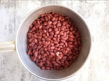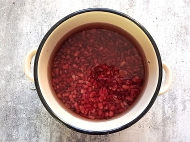 Фасоли я взяла 1,5 стакана. На ночь замочить забыла, поэтому залила ее на пару часов. Даже за это время фасоль заметно набухла. Воды для варки взяла побольше, т. к. она хорошо впитывается. У меня фасоль варилась чуть более часа, главное, чтобы она стала мягкой и не разварилась.