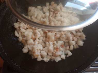 С выбранного кусочка сала срежьте шкуру (если решили её убрать). Нарежьте сало мелкими кубиками размером не более 1x1 см. Посолите сало и хорошо перемешайте, чтобы каждый кусочек был хорошо посолен. На этом этапе можно добавить любые специи по вашему вкусу. Готовьте сало в казане, если он у вас есть. Если нет, используйте кастрюлю или сковороду с толстыми стенками и дном. С выбором помогут статьи по ссылкам в конце рецепта.