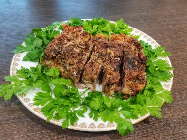 Завернула мясо в фольгу,выложила на противень и убрала запекаться в духовку при 190° на 1.5 часа. Затем открыла фольгу и ещё подержала в духовке минут 15.