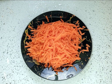 Имейте в виду, что от того, как Вы измельчите морковь, зависит и конечный результат в этом блюде: натертая морковь в процессе термической обработки превратится в кашицу и равномерно смешается с остальными ингредиентами, нарезанная соломкой или брусочками сохранит свою форму.