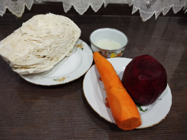 Решила приготовить салат Метёлка для похудения и очищения кишечника. Ни разу не пробовала,но много слышала. Морковь и свеклу очистила и натерла мелкой тёрке ( как советует автор). Капусту мелко порезала. Соединила все овощи, добавила немного масла растительного и перемешала. Оставила на 1 час пропитаться.