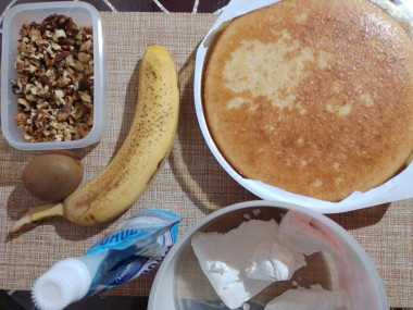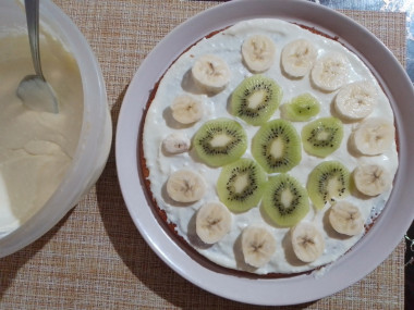 Из фруктов взяла один банан и два киви. Пропитывался он у меня в холодильнике всю ночь и был очень нежный.