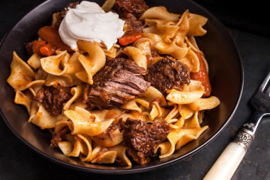 Пока мясо доводится до готовности, займитесь пастой. Доведите воду до кипения в кастрюле в пропорции 1 литр воды на 100 граммов пасты. Когда вода закипит, уменьшите огонь до среднего, подсолите и отправьте в кастрюлю макаронные изделия. Варите, периодически помешивая, до состояния аль денте (ориентируйтесь по инструкции на упаковке). Важно не переваривать пасту, чтобы она осталась плотной.