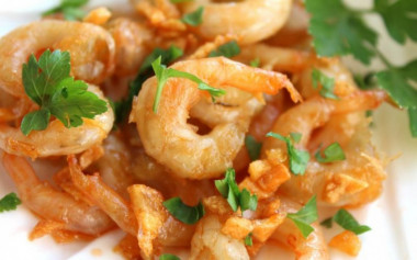 Жаренные креветки с чесноком / Fried shrimps with garlic