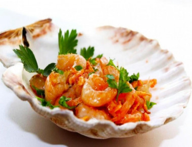 Подавайте креветки жареные с чесноком и сливочным маслом к столу. Приятного аппетита!