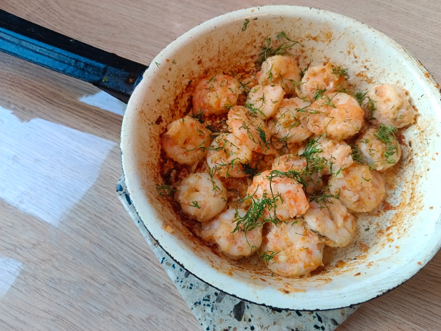 Восхитительные креветки жареные с чесноком на сковороде. Сочные, просто как я люблю. Большое спасибо за рецептик!