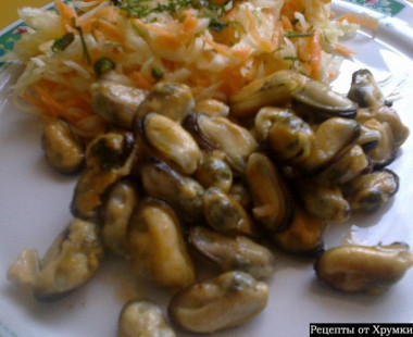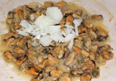 Также можно предложить мидии с луком как холодную закуску к бокалу белого вина.