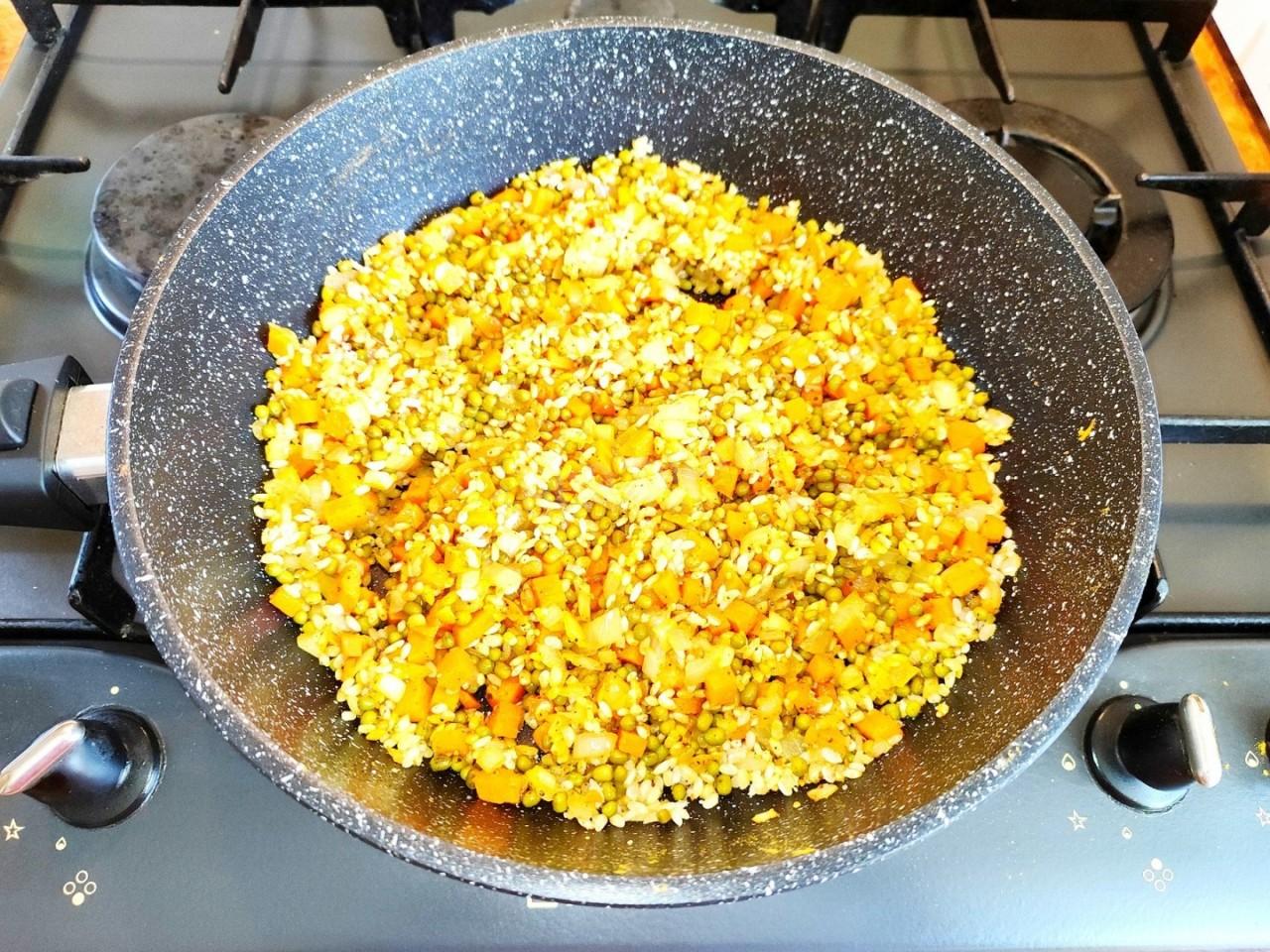 И первый и второй раз приготовление начиналось с разогрева на растительном масле специй и поочерёдным добавлением чеснока с имбирём и далее овощей и круп. Этот метод волшебно раскрывает специи и приправы и насыщает ими крупы.