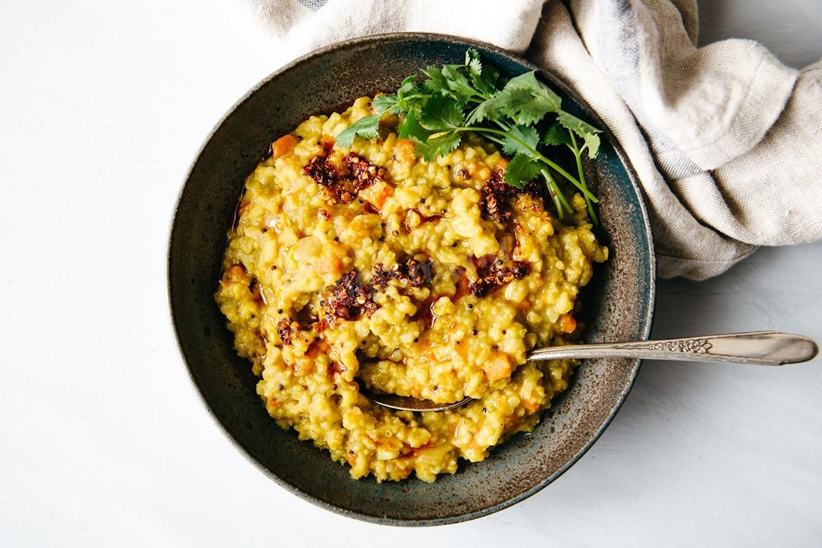 Если консистенция получилась слишком жидкой, оставьте кашу готовиться еще 1-2 минуты на самом маленьком огне с открытой крышкой. Если масса слишком густая, добавьте еще полстакана горячей воды, перемешайте и отключите огонь. Идеальная плотность готового кичри зависит исключительно от ваших личных предпочтений. Подавайте блюдо горячим, украсив по желанию свежей зеленью или добавив немного масла чили по желанию. Приятного аппетита!