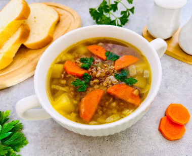 Когда дома маленькие дети, которые постоянно хотят есть, но не любят суп, то этот рецепт супа будет настоящей находкой. Моя семья просто обожает гречневый суп, приготовленный по этому рецепту, и всегда просит добавки. Он получается очень вкусным, сытным и, главное, легким в приготовлении. Все необходимые продукты для этого рецепта обычно есть в каждом доме.